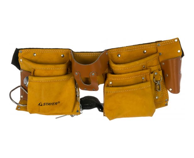 Пояс для инструментов Stayer Master 38512 кожаный 10 карманов 3 подвески