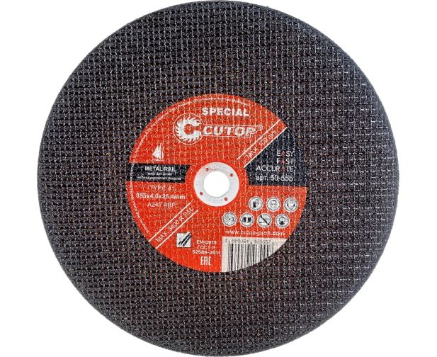 Профессиональный специальный диск отрезной по металлу для резки железнодорожных рельсов CUTOP Special 50-555 Т41-355x4,0x25,4 мм