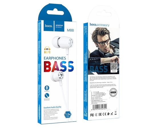 Проводные наушники с микрофоном внутриканальные Hoco M88 Jack 3,5 (white) (202597)