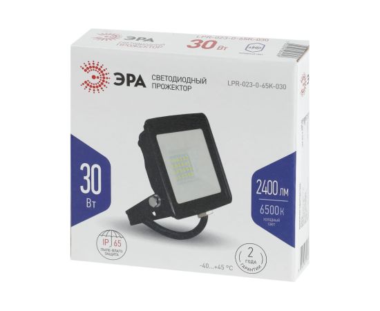 1.Светодиодный уличный прожектор ЭРА LPR-023-0-65K-030 30Вт 6500K 2400Лм 103х99х23,5 Б0052023 отличается простой и быстрой установкой: есть кронштейн специальной формы и регулировочные болты для выбора направления света