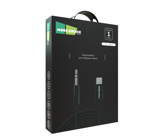 PURE Аудиокабель AUX 3.5mm Type-C 1м More choice UK28a (Black)