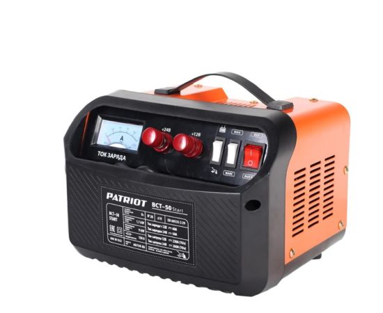 Пускозарядное устройство PATRIOT BCT- 50 Start 650301552 широко используется с сфере технического обслуживания автомобилей, а также автолюбителями в быту. Модель заряжает различные типы свинцово-кислотных аккумуляторов в двух режимах - обычном и ускоренном (с повышенным током). Устройство также применяется в холодное время года для более легкого запуска двигателя.