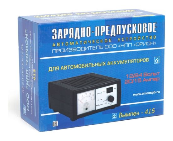 Зарядное устройство, 0-20А,12/24В Вымпел НПП Вымпел-415 2024 предназначается для заряда автомобильных и мотоциклетных 12/24В аккумуляторных батарей широкого диапазона емкости в полностью автоматическом режиме. Модель позволяет заряжать разряженный до нуля аккумулятор. Возможно использование в качестве предпускового устройства. Наличие двухтактного высоковольтного высокочастотного преобразователя обеспечивает высокий КПД. Применение данной модели рекомендуется исключительно внутри помещений.