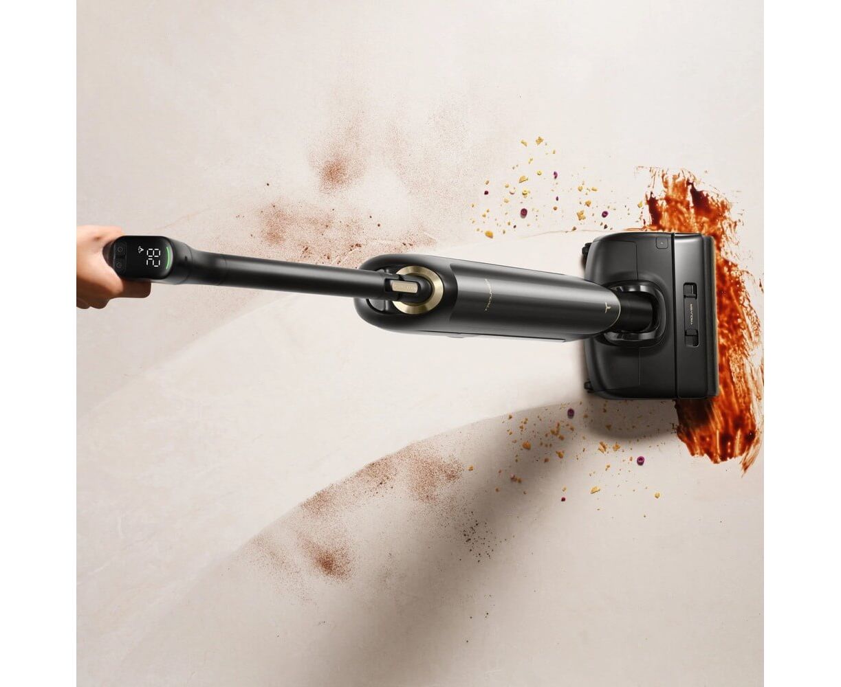 высокоскоростной двигатель с частотой вращения 104000 об/мин, автоматическая самоочистка (промывка щётки при температуре 90 °C, сушка валика при температуре 90 °C), технология Lie-Flat Raech (складная труба всасывания с наклоном на 180°), вращение на 90°, технология защиты от запутывания волос Tangle-Free, индикация концентрации пыли и процесса сушки валика