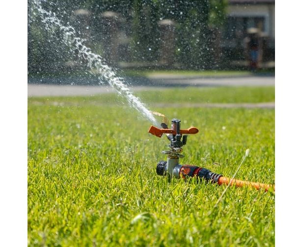 Импульсный металлический разбрызгиватель DAEWOO impulse round sprinkler spike DWS 1120 предназначен для полива больших территорий.