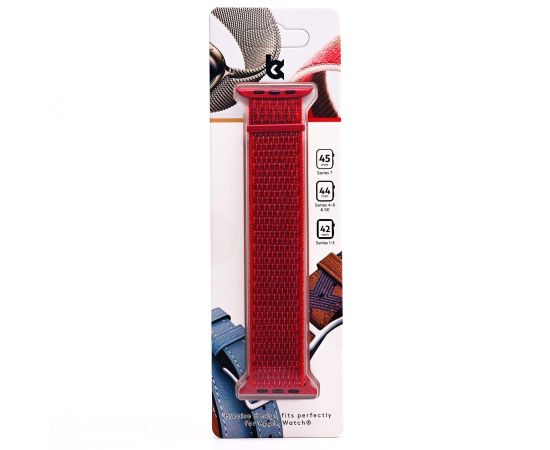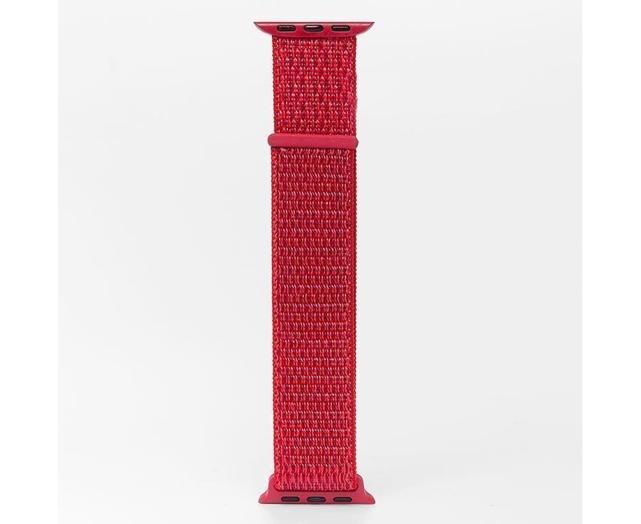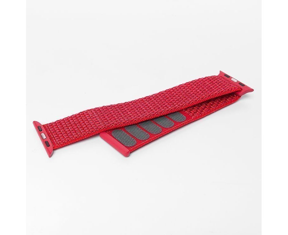 Текстильный ремешок ApW22 для Apple Watch (Эпл Вотч) 42/44/45мм / Спортивный браслет для умных смарт-часов на липучке, красный