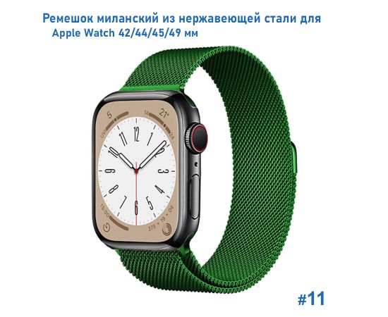 Ремешок миланcкий из нержавеющей стали Great Case Milanese Loop для Apple Watch 42/44/45/49 мм, 255мм, на магните, зеленый (11)