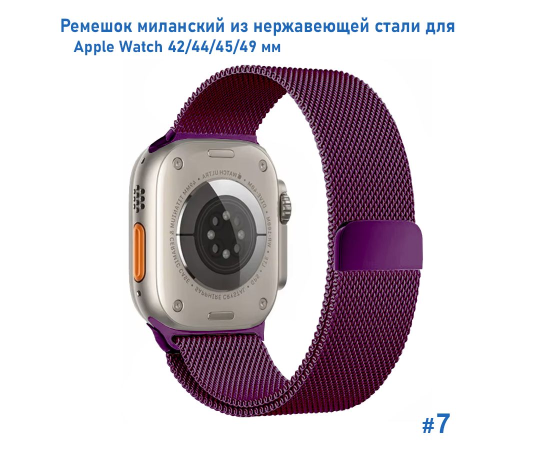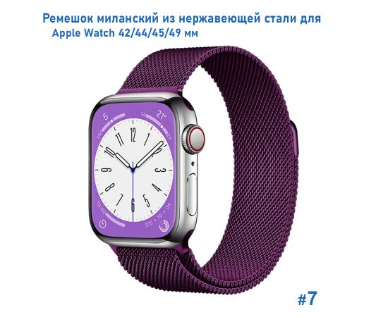 Ремешок миланcкий из нержавеющей стали Great Case Milanese Loop для Apple Watch 42/44/45/49 мм, 255мм, на магните, фиолетовый (7)