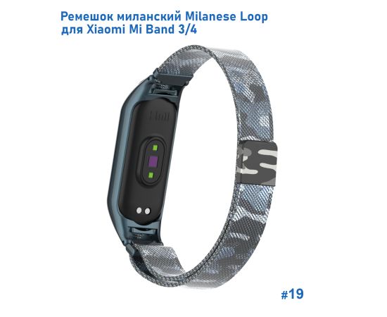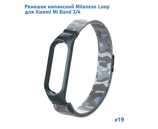 Ремешок миланcкий из нержавеющей стали Great Case Milanese Loop для Xiaomi Mi Band 3/4, 260мм, на магните, камуфляж+белый (19)