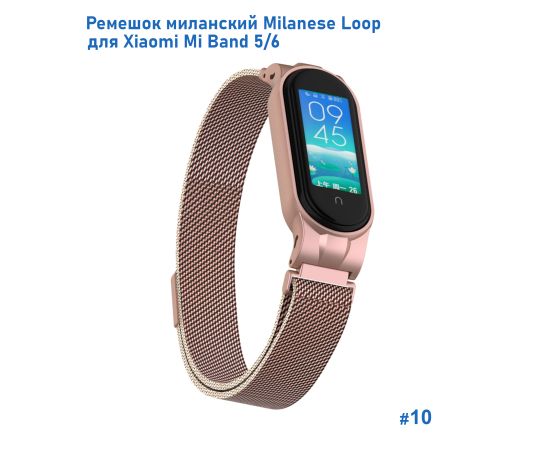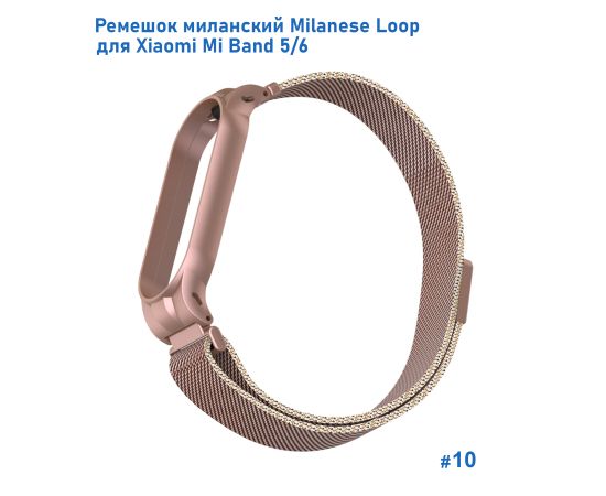 Ремешок миланcкий из нержавеющей стали Great Case Milanese Loop для Xiaomi Mi Band 5/6, 260мм, на магните, розовое золото (10)