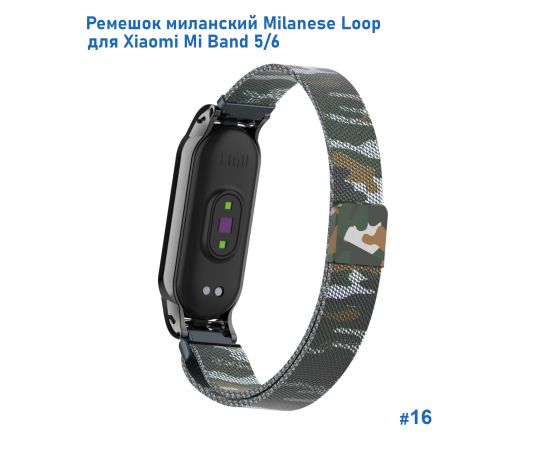 Ремешок миланcкий из нержавеющей стали Great Case Milanese Loop для Xiaomi Mi Band 5/6, 260мм, на магните, камуфляж+армейский (16)