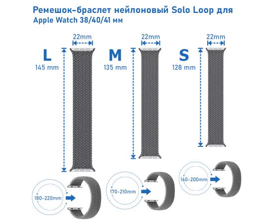 Ремешок-браслет нейлоновый Great Case Solo Loop для Apple Watch 38/40/41 мм, S(128мм), серый (7)