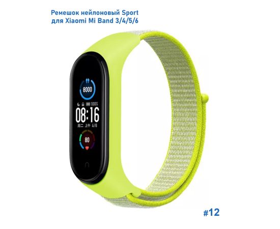 Ремешок нейлоновый Great Case Sport для Xiaomi Mi Band 3/4/5/6/7, 260мм, на липучке, лимонный желтый (12)
