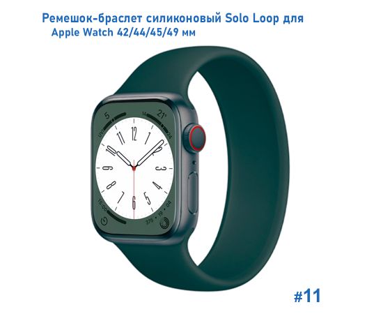Ремешок-браслет силиконовый Great Case Solo Loop для Apple Watch 42/44/45/49 мм, M(145мм), зеленый кактус (11)