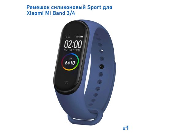Ремешок силиконовый Great Case Sport для Xiaomi Mi Band 3/4, 250мм, на кнопке, темно-синий (1)