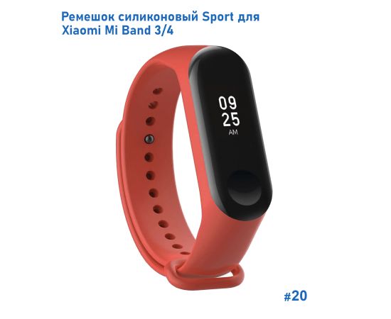 Ремешок силиконовый Great Case Sport для Xiaomi Mi Band 3/4, 250мм, на кнопке, красная камелия (20)