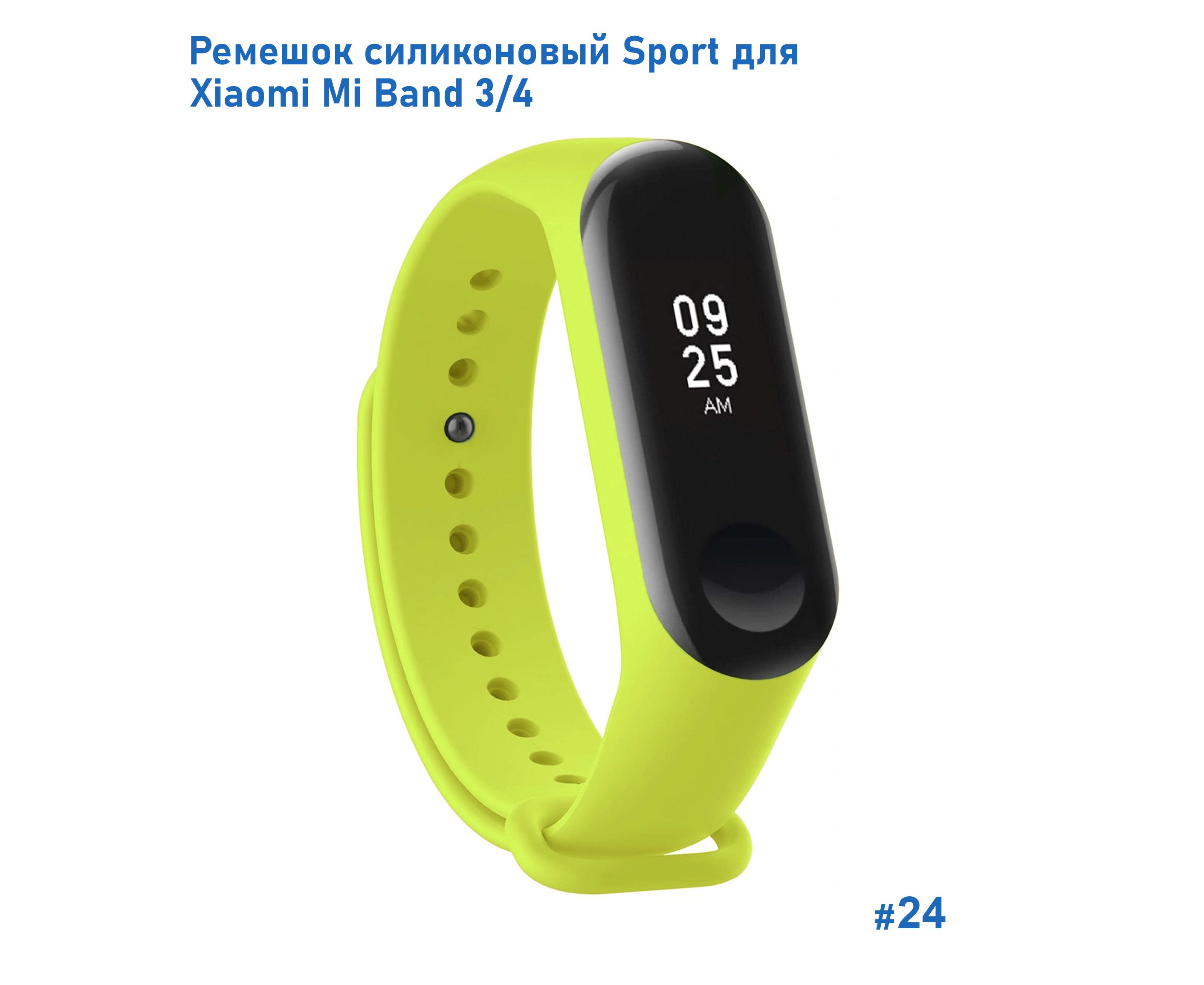 Ремешок силиконовый Great Case Sport для Xiaomi Mi Band 3/4, 250мм, на кнопке, лайм (24)