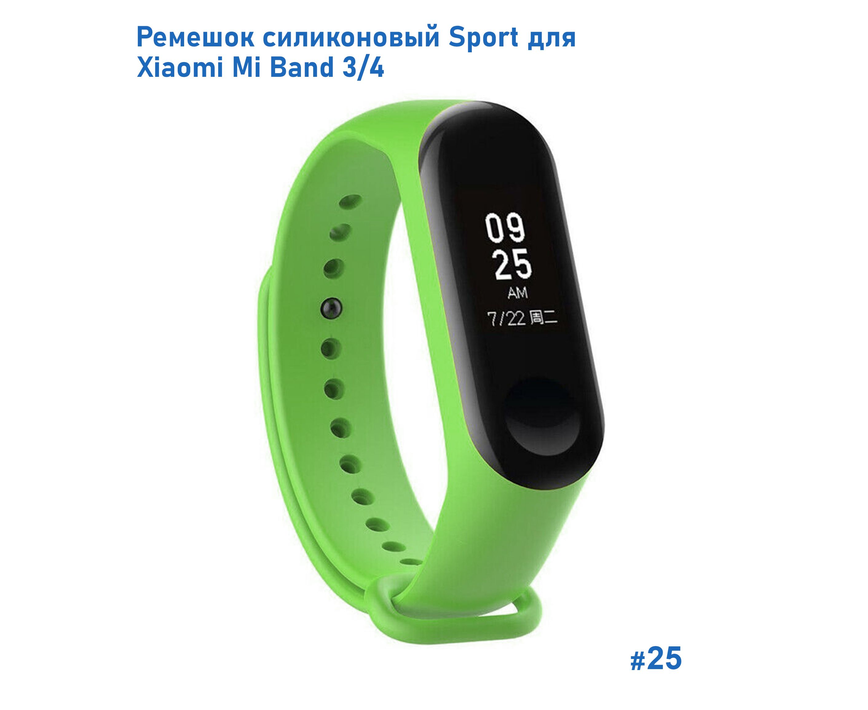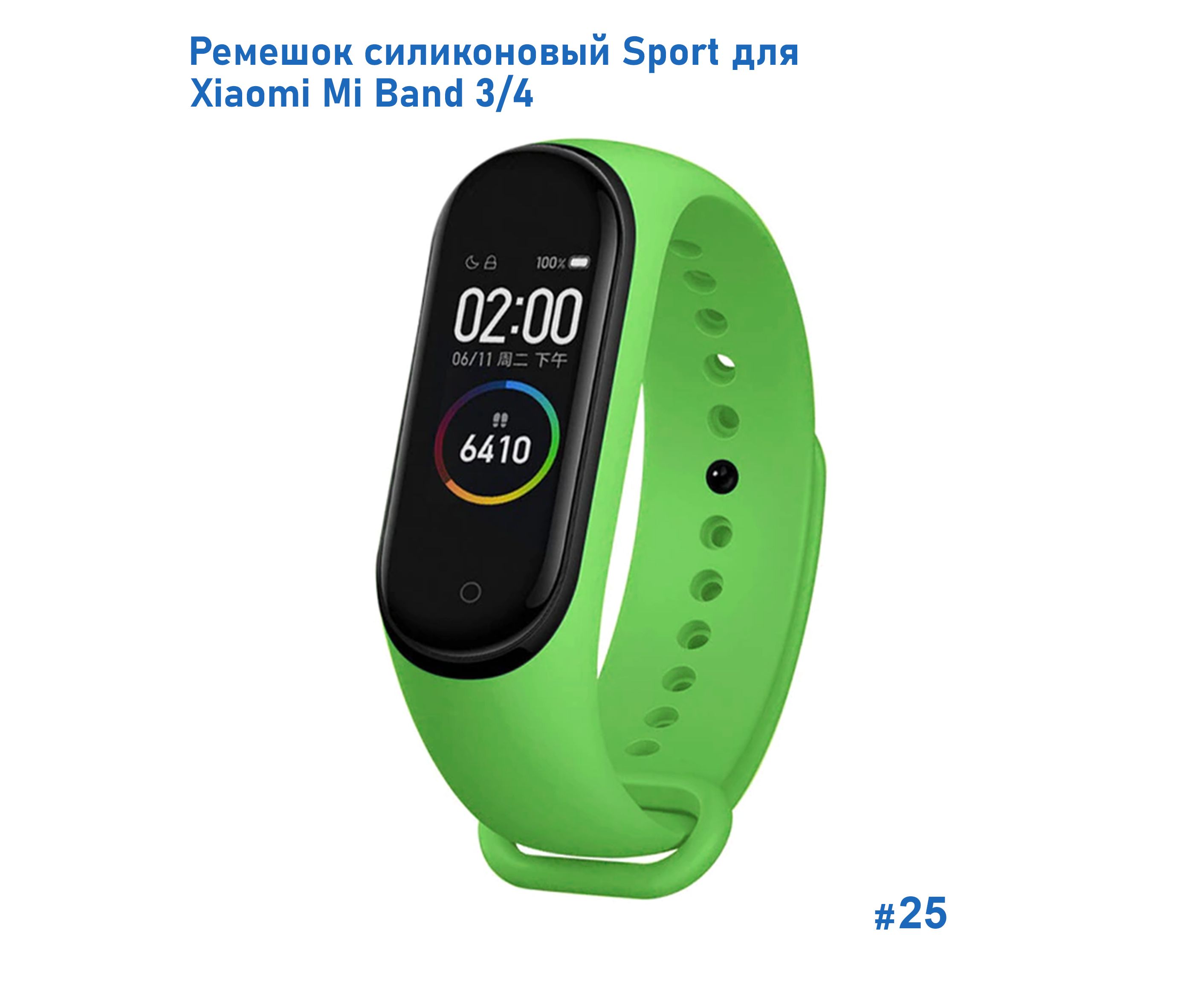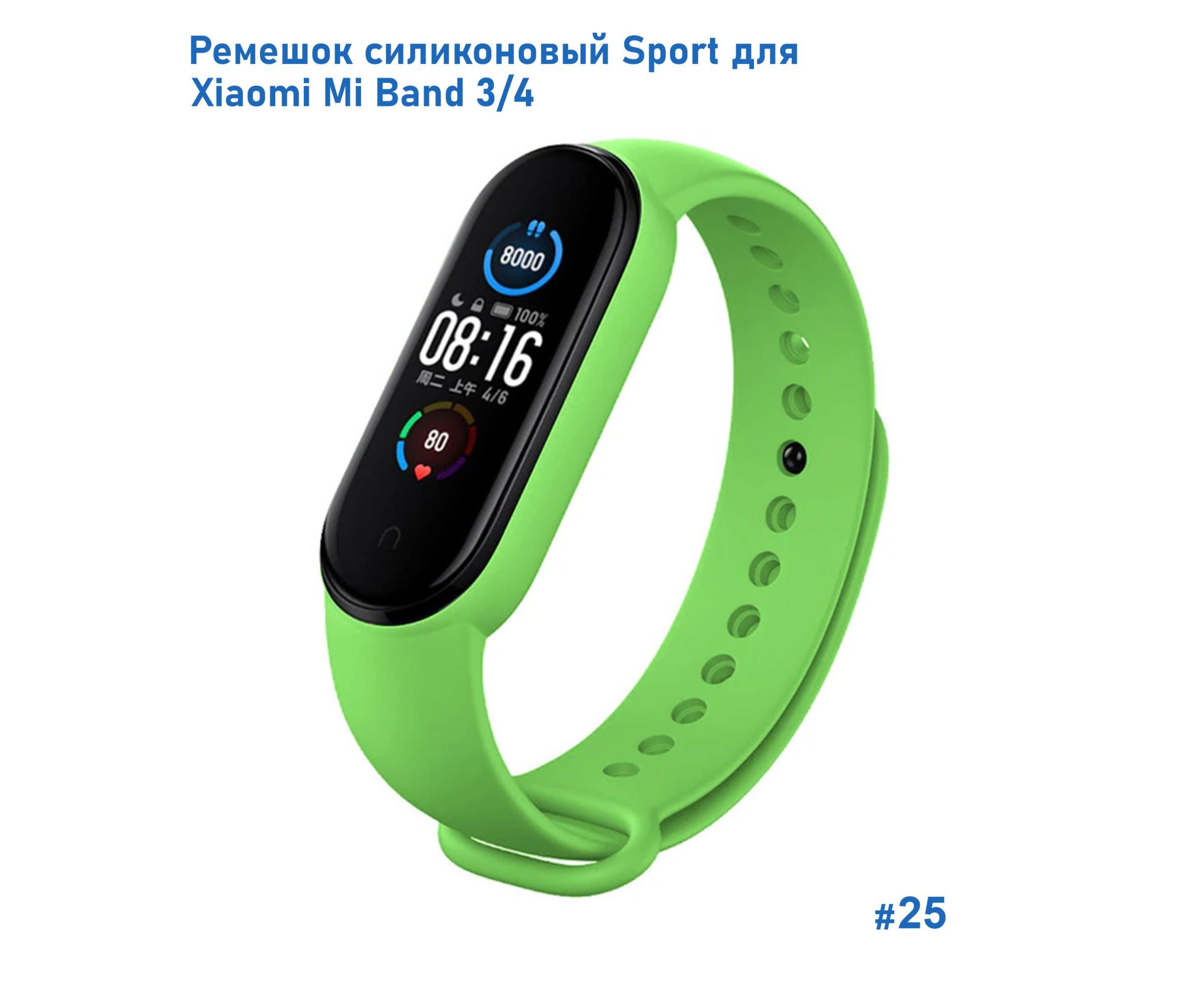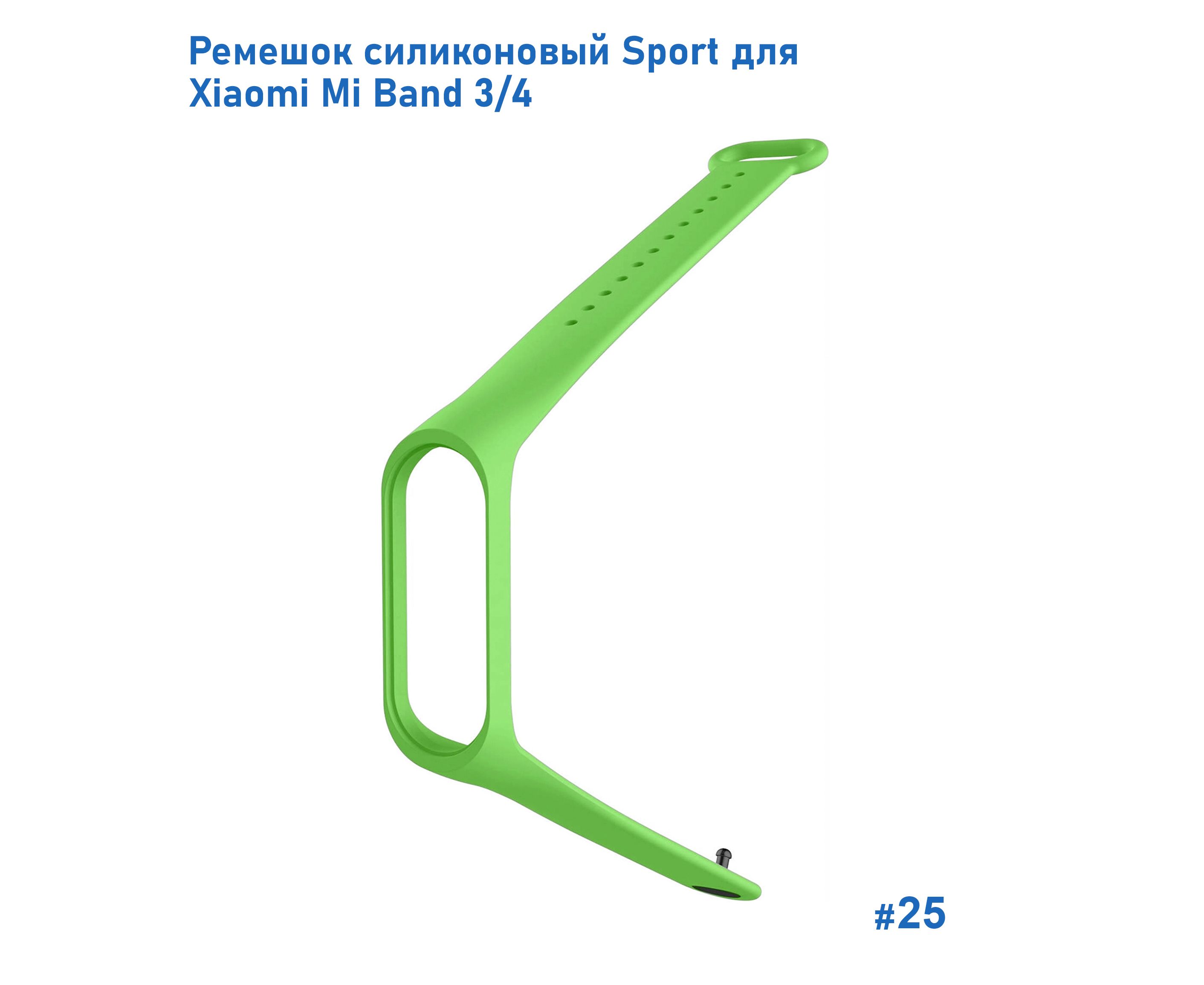 Ремешок силиконовый Great Case Sport для Xiaomi Mi Band 3/4, 250мм, на кнопке, ярко-зеленый (25)