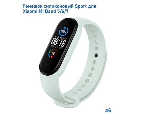 Ремешок силиконовый Great Case Sport для Xiaomi Mi Band 5/6/7, 250мм, на кнопке, светло-бирюзовый (6)