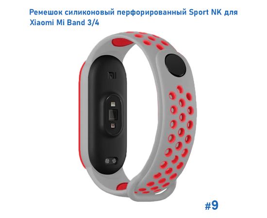 Ремешок силиконовый перфорированный Great Case Sport NK для Xiaomi Mi Band 3/4, 250мм, на кнопке, серый+красный (9)