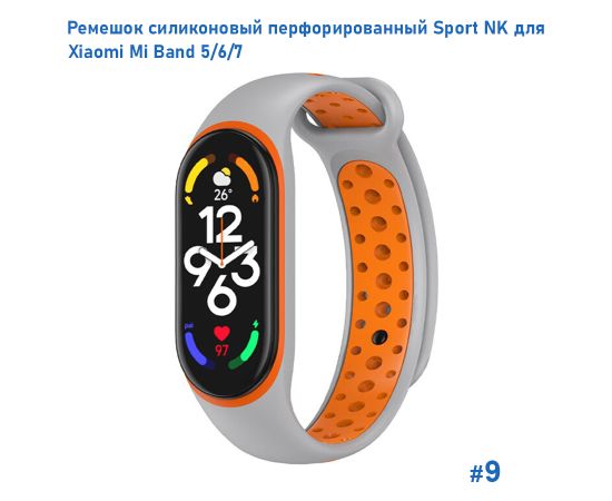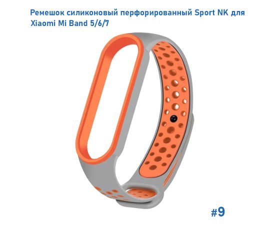 Ремешок силиконовый перфорированный Great Case Sport NK для Xiaomi Mi Band 5/6/7, 250мм, на кнопке, серый+оранжевый (9)