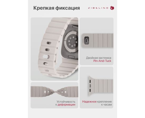 Ремешок магнитный силиконовый для Apple Watch 38mm, 40mm, 41mm (размер M/L) с застежкой штифтом, бежево-серый (Эпл Вотч 38 мм 40 мм 41мм)