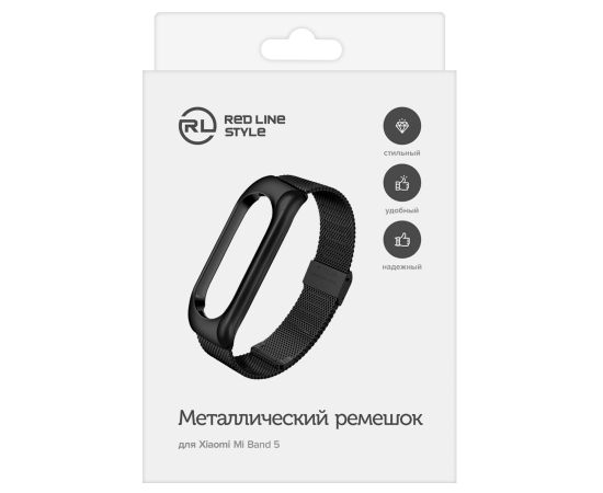 Ремешок металлический для фитнес-браслета Xiaomi Mi Band 5/ Mi Smart Band 6, черный