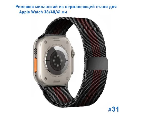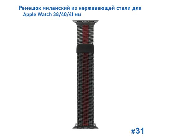 Ремешок миланcкий из нержавеющей стали Great Case Milanese Loop для Apple Watch 38/40/41 мм, 235мм, на магните, черный+красный (31)