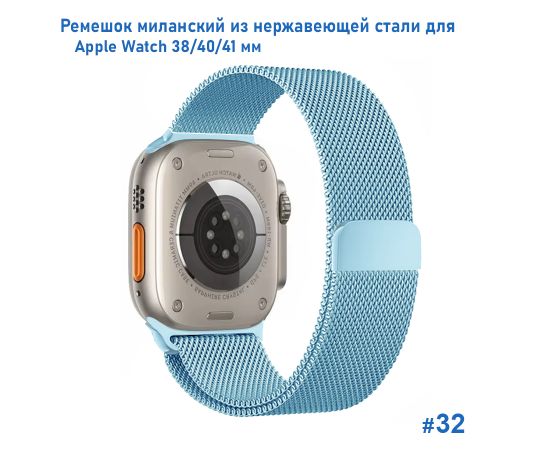 Ремешок миланcкий из нержавеющей стали Great Case Milanese Loop для Apple Watch 38/40/41 мм, 235мм, на магните, светло-голубой (32)