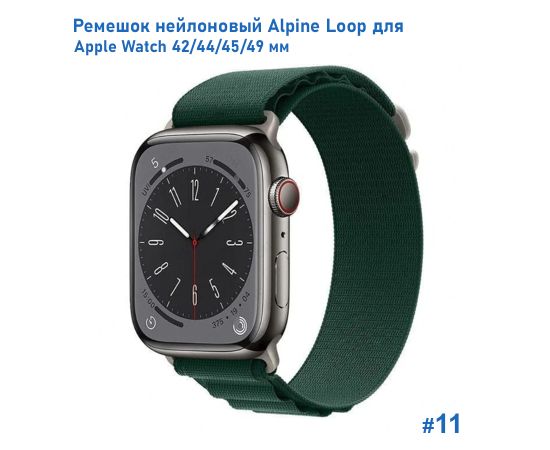 Ремешок нейлоновый Great Case Alpine Loop для Apple Watch 42/44/45/49 мм, 235мм, на застежка, темно-зеленый (11)