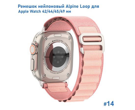 Ремешок нейлоновый Great Case Alpine Loop для Apple Watch 42/44/45/49 мм, 235мм, на застежка, розовый (14)