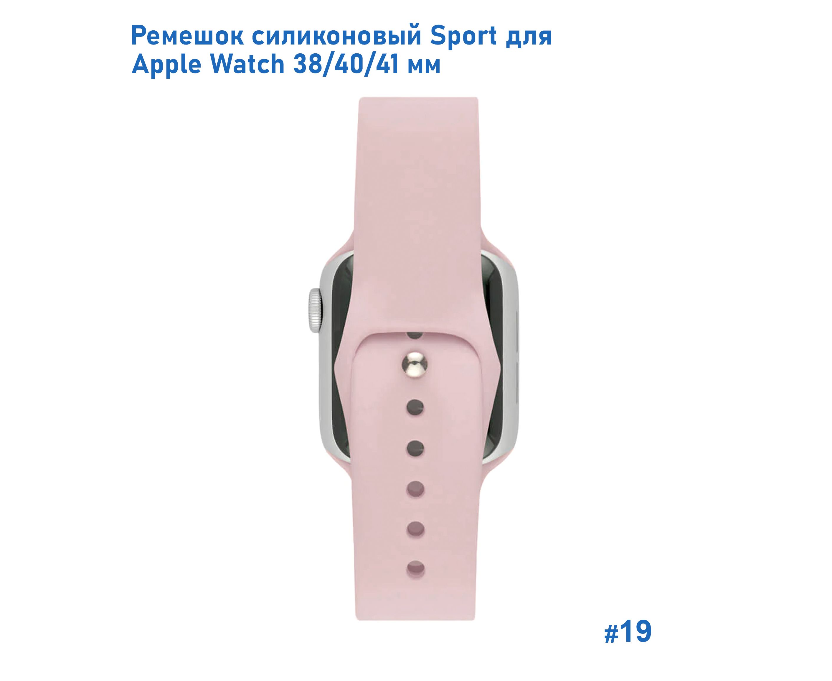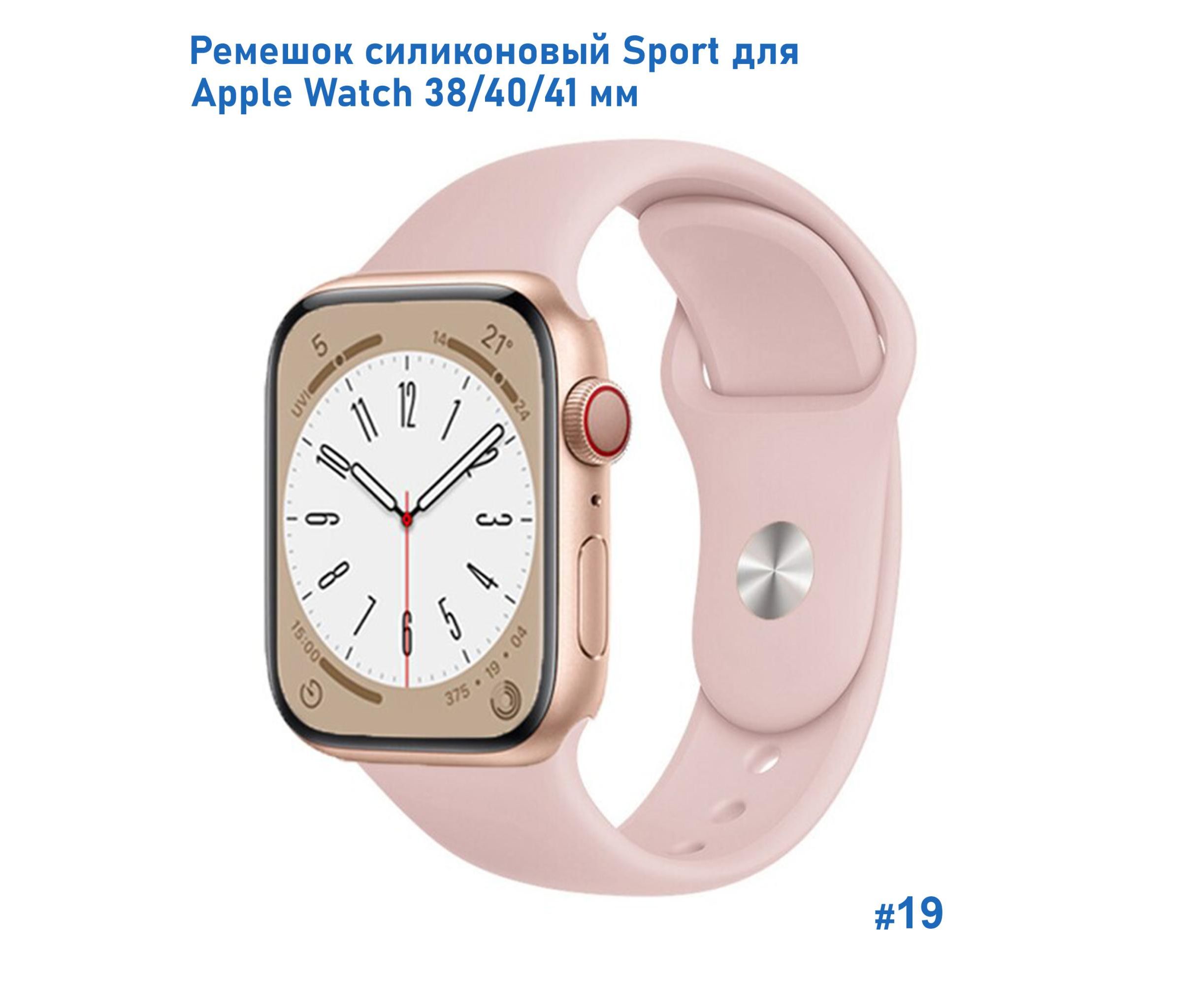 Ремешок силиконовый Great Case Sport для Apple Watch 38/40/41 мм, 225мм, на кнопке, пудровый (19)