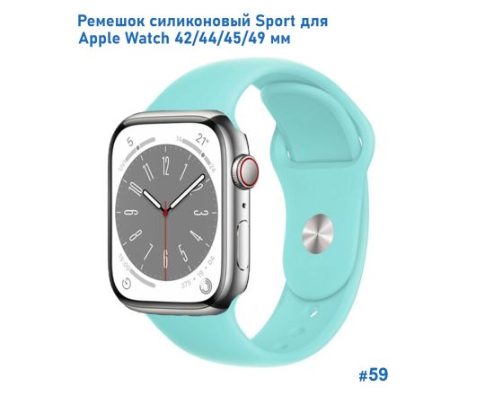 Ремешок силиконовый Great Case Sport для Apple Watch 42/44/45/49 мм, 235мм, на кнопке, бирюзовый (59)