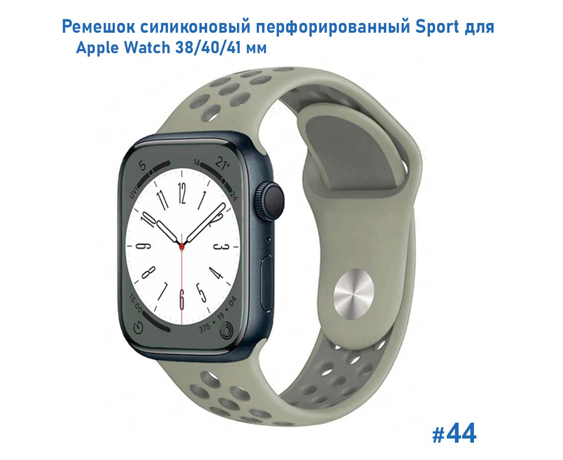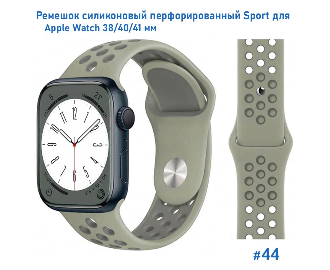 Ремешок силиконовый перфорированный Great Case Sport NK для Apple Watch 38/40/41 мм, 225мм, на кнопке, серый+серо-зеленый (44)