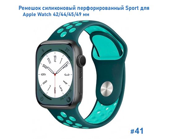 Ремешок силиконовый перфорированный Great Case Sport NK для Apple Watch 42/44/45/49 мм, 235мм, на кнопке, темно-зеленый+мятный (41)
