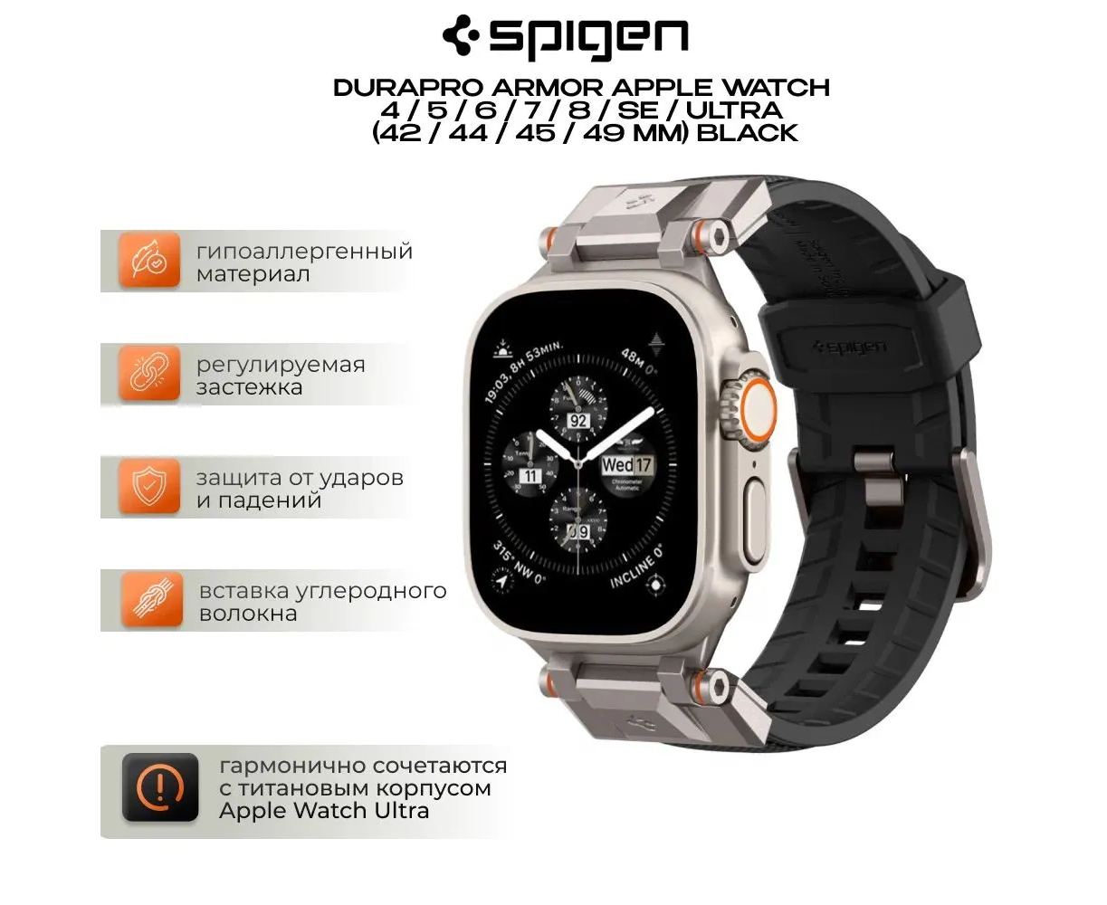 Если вы ищете ремешок для Apple Watch, который сочетает в себе стиль, надежность и комфорт, то оригинальный ремешок Spigen Dura Pro – ваш идеальный выбор. Нажмите «Купить» и наслаждайтесь качеством уже сегодня!