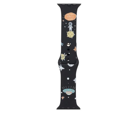 Силиконовый браслет ApW01 для Apple Watch (эпл вотч) 42 mm 42/44/45 мм/ сменный с забавным принтом, В космосе / цвет, черный