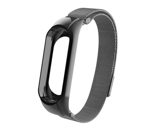 Ремешок металлический WB06 для фитнес-браслета Xiaomi Mi Band 5 / на магнитной застежке (Миланское плетение) , черный