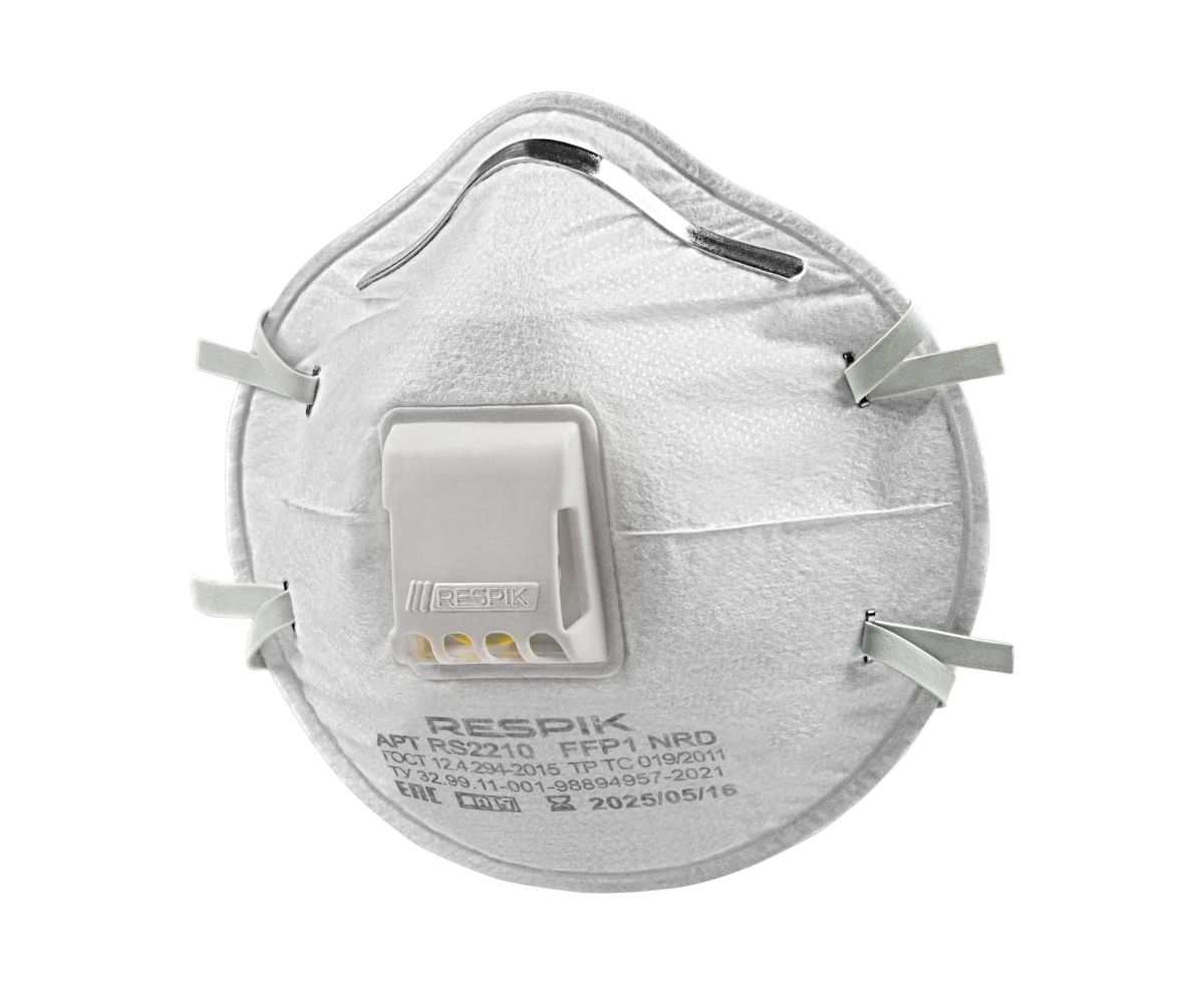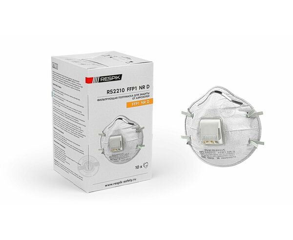 Респиратор RESPIK FFP1 NR D 10шт RS2210 применяется для защиты от твердых и плохо испаряемых жидких аэрозолей с клапаном выдоха.