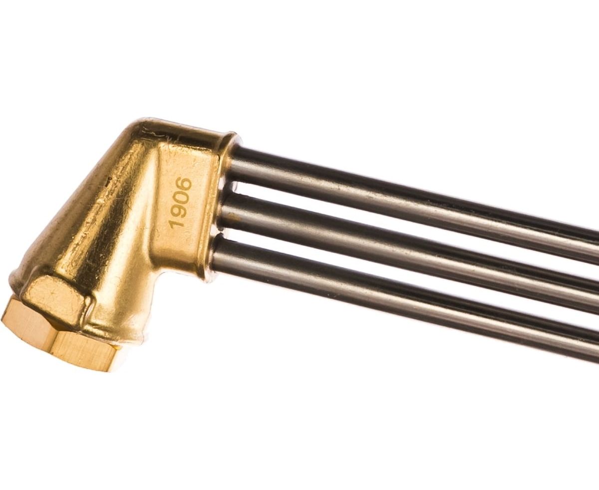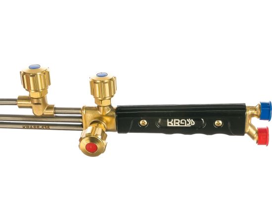 Резак трехтрубный универсальный KRASS-535 2278588 вентильный, внутрисоплового смешения предназначен для ручной газокислородной резки (раскроя) листового и сортового металла из низкоуглеродистых сталей толщиной до 300 мм.