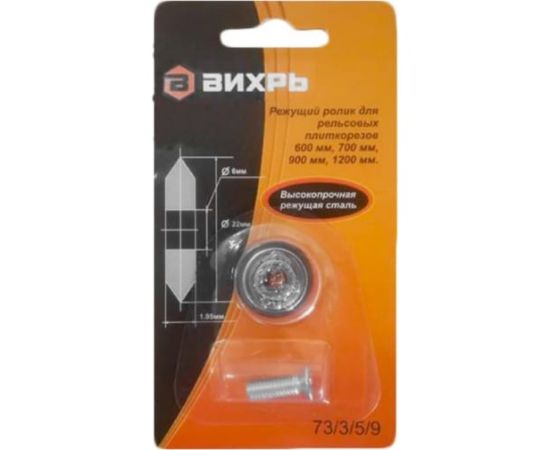 Ролик является сменным элементом плиткорезов Вихрь. Подходит для плиткорезов с максимальной длиной плитки 600 мм, 700 мм, 900 мм и 1200 мм. Применяется при резке керамической кафельной плитки. Твёрдость HRA(90-94) 93