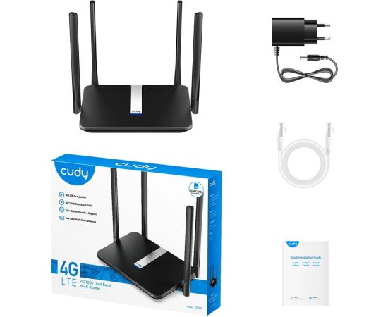 Роутер беспроводной Cudy LT500 AC1200 10/100BASE-TX/4G cat.4 черный