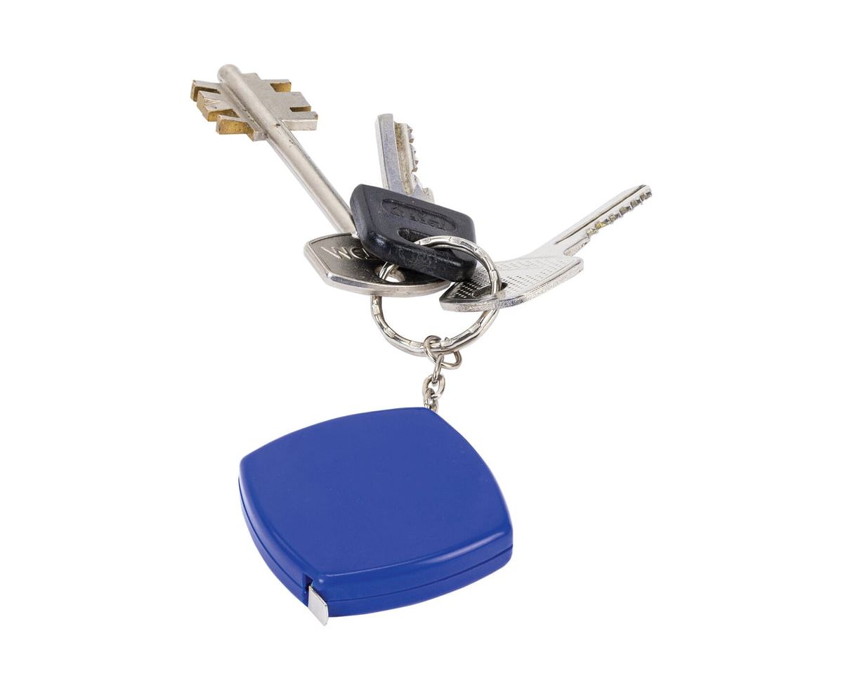 Рулетка оснащена металлическим кольцом для крепления на связку с ключами, сумку или рюкзак.
