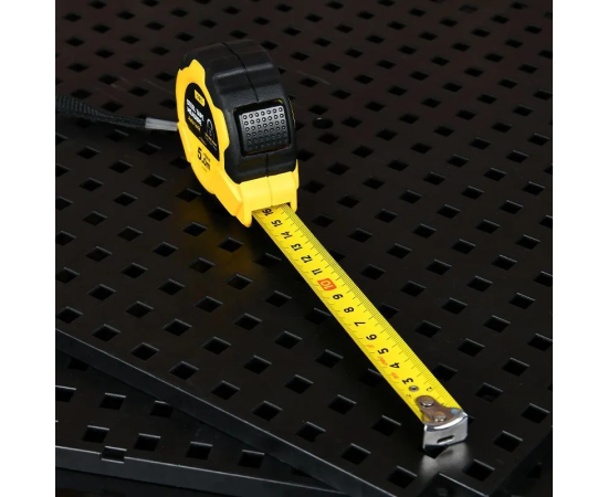 Метрическая шкала на рулетке позволяет производить измерения в привычных для строителей единицах измерения.