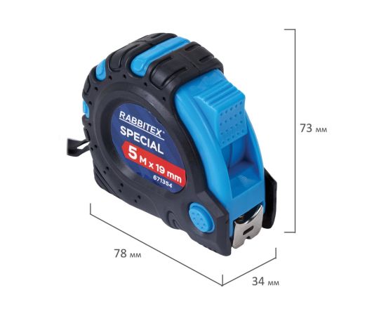 Рулетка измерительная RABBITEX 671354 Special 5м*19мм, обрезиненный корпус, 3 фиксатора