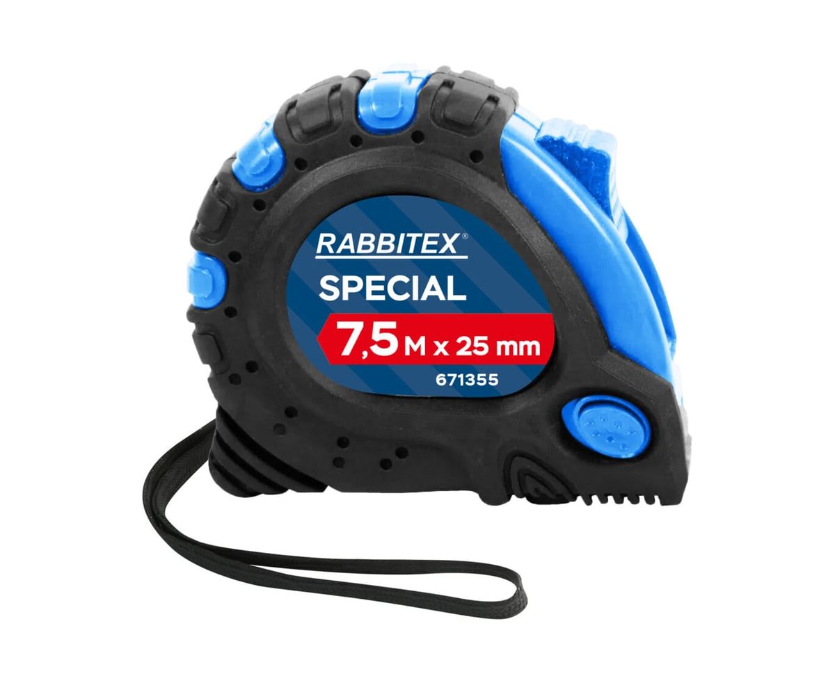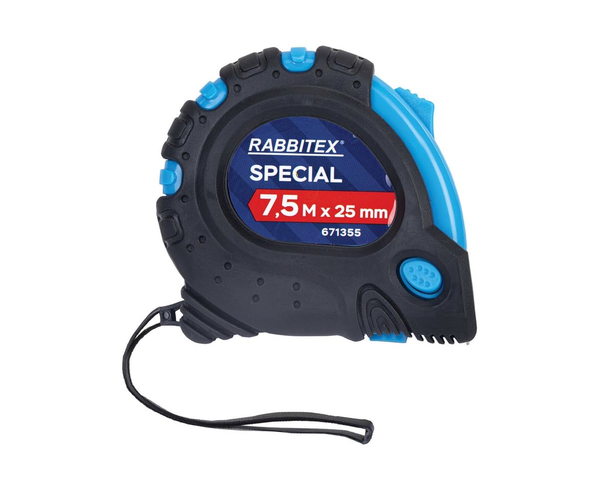 Рулетка измерительная RABBITEX 671355 Special 7,5м*25мм, обрезиненный корпус, 3 фиксатора