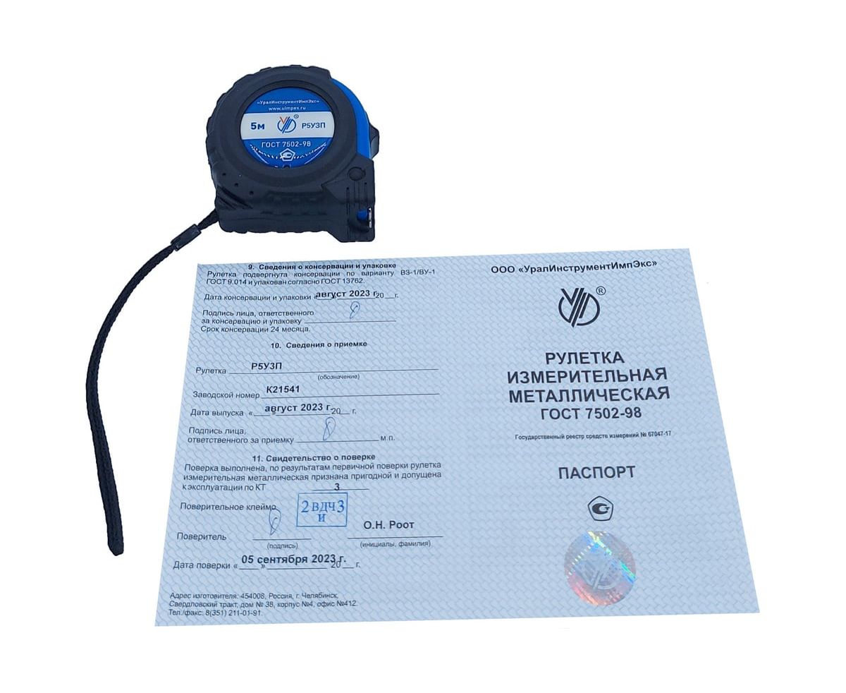 Рулетка УралИнструментИмпЭкс Р5У3П (212073) с поверкой (ГРСИ №67047-17)