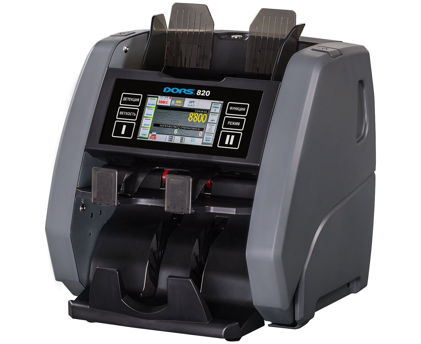 Счётчик DORS 820M1 предназначается для пересчёта банкнот различного номинала и в различной ориентации, с автоматическим определением валюты, номинала пересчитываемых банкнот и контролем подлинности, в том числе по четырем машиночитаемым признакам. Счётчик оснащен функцией считывания и сверки серийных номеров банкноты.