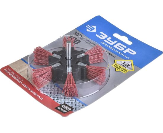 Щетка дисковая звезда ЗУБР 35163-100_z02 применяется с дрелью для удаления заусенцев, въевшейся грязи и шлифовки поверхностей изделий из пластика, древесины, стали и цветных металлов. Рабочая часть щётки изготовлена из нейлоновой проволоки и покрыта абразивом. Подходит для бережного матирования и текстурирования дерева.