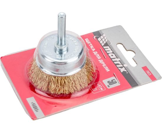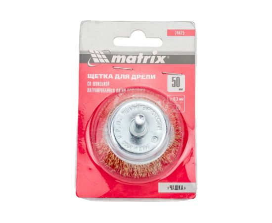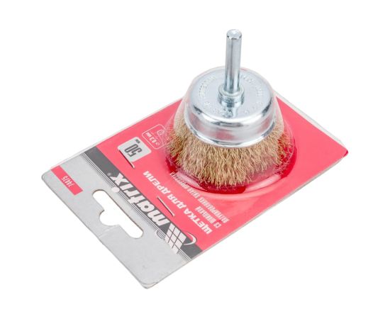 Щетка для дрели Matrix 74475 50мм, чашка со шпилькой, латунированная витая проволока